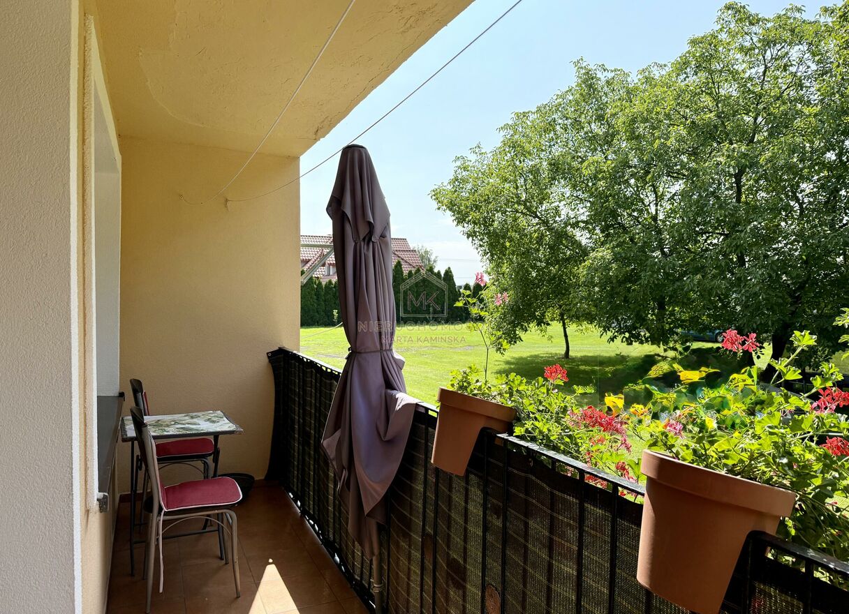 - duży balkon otoczony zielenią, idealny na poranną kawę